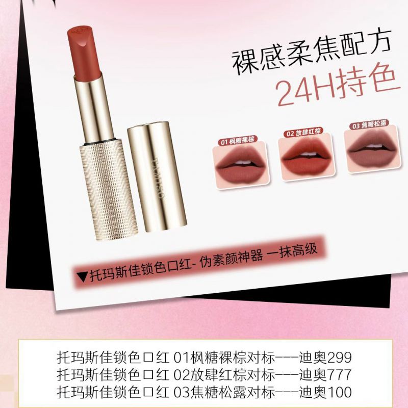 托马斯佳 锁色口红02 放肆红棕