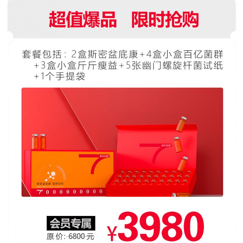 产品特点:2盒斯密盆底康+4盒小盒百亿菌群+3盒小盒斤斤瘦益+5张幽门螺旋杆菌试纸+1个手提袋
